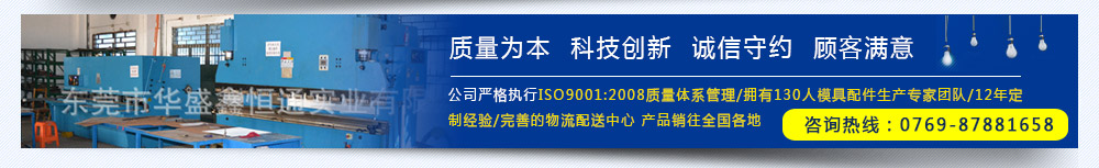 东莞市华盛鑫恒通实业有限公司成立于2003年08月,总占地面积6200㎡,现有员工130人(其中本科以上技术研发人员8人),是一家致力于各种行业清洗架、钢化架、模组顶针测试治具的专业非标夹、治具设计制造商。公司拥有CNC加工中心(北京精雕)、冲床、剪板机、折弯机、线切割机、氩弧焊机、点焊机、碰焊机、车床、铣床、磨床、钻床、攻牙机、超声波清洗机等不同种类不同规格、10T-200T等各类加工设备90台。公司严格执行ISO9001:2008质量体系管理,品质检测仪器分别有:现代化高端检查设备投影仪(2.5次元检测仪)、测硬器、盐雾测试机若干。等经过长期的摸索,拥有一批高素质的生产队伍及专业的工程技术人员,设计各种配套设施。 |